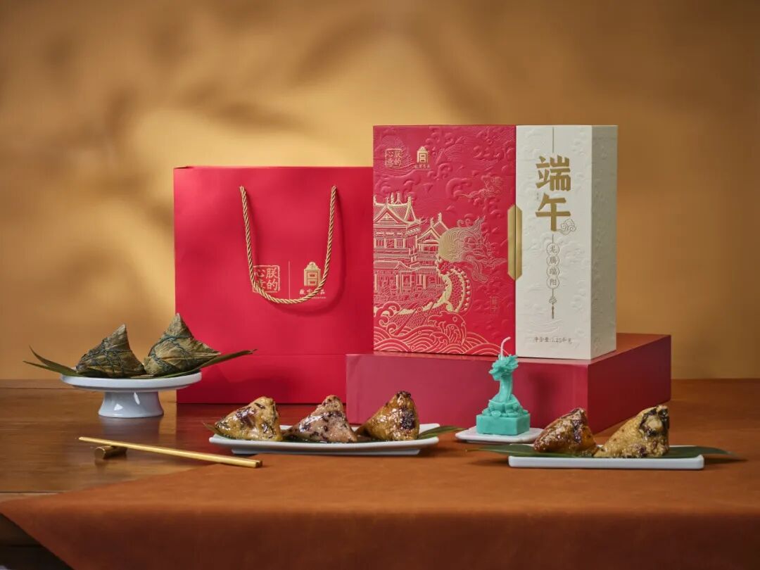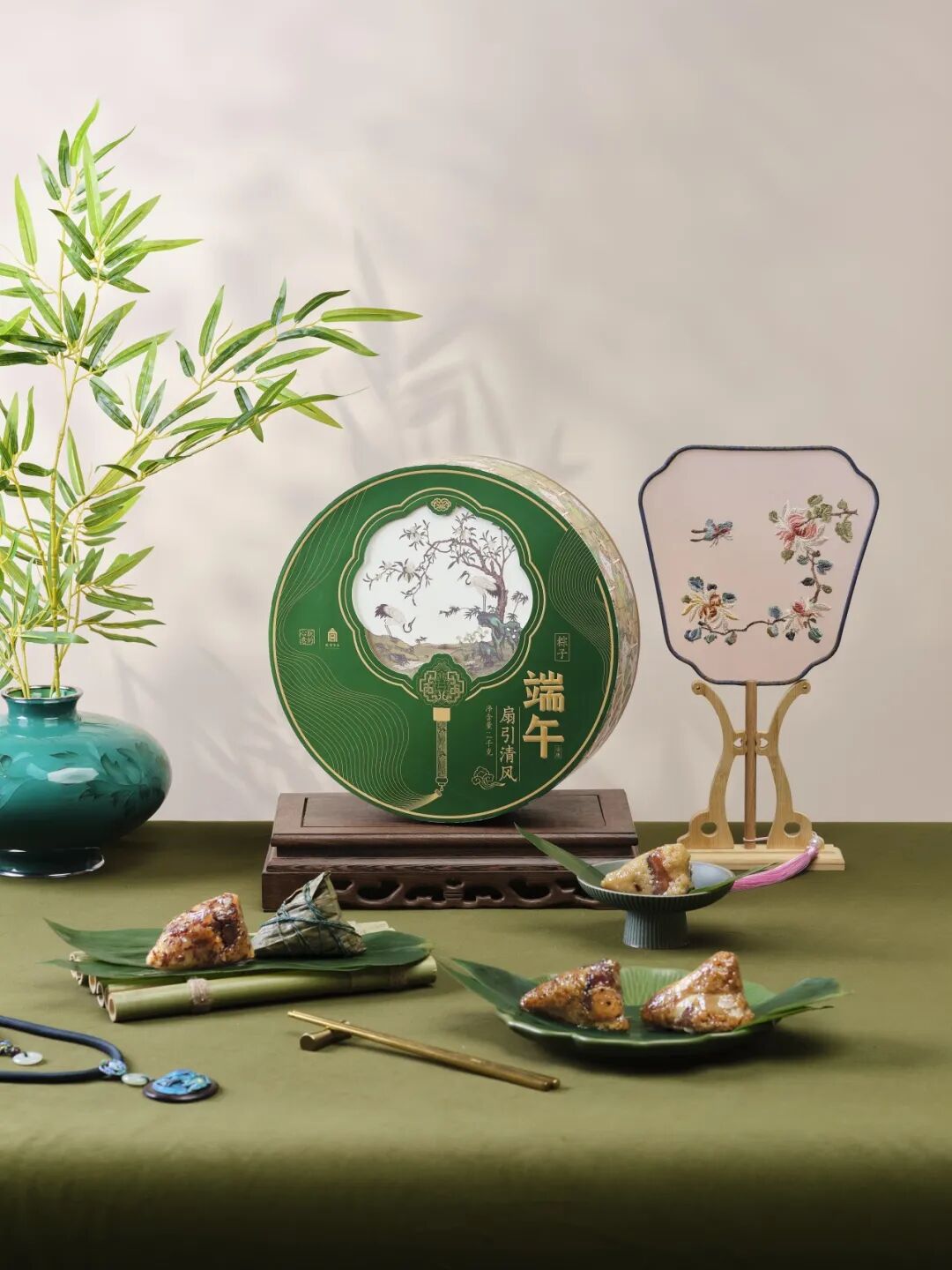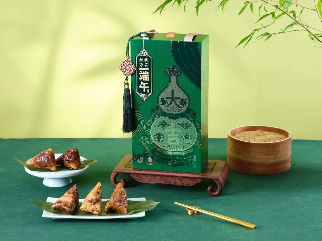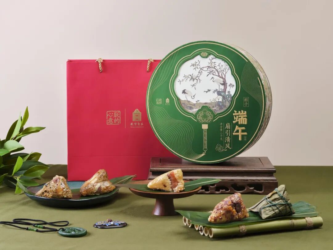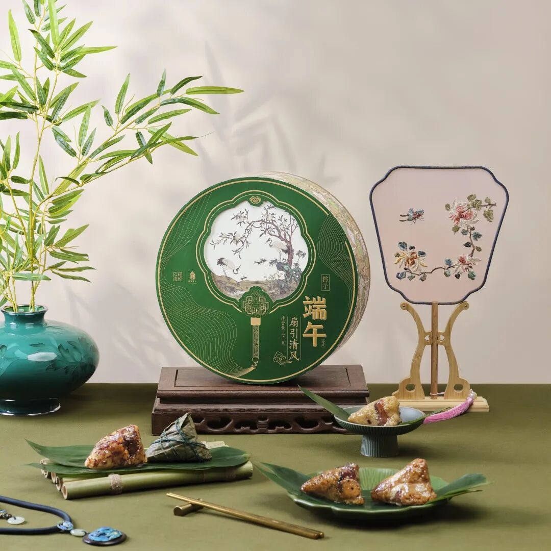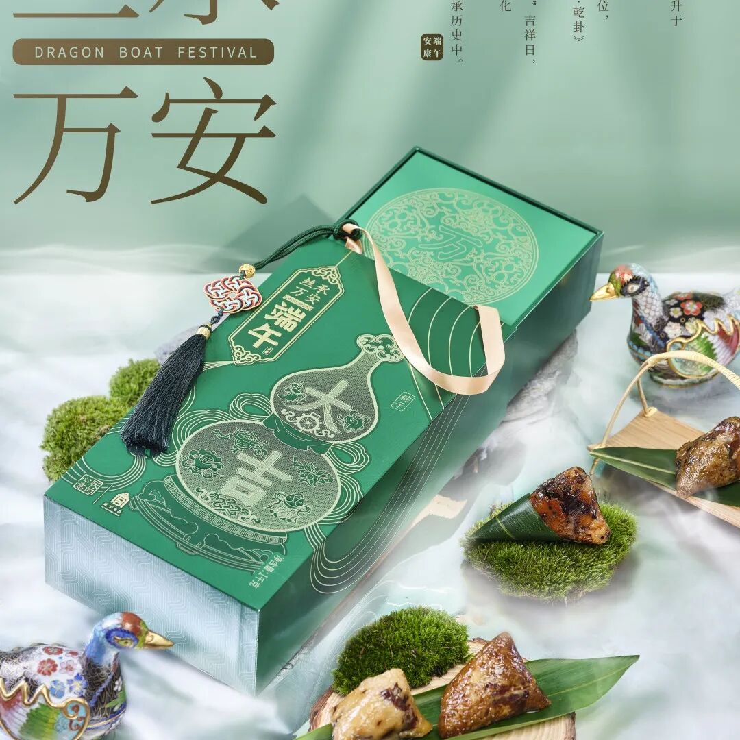 2024朕的心意·故宫食品的端午节粽子礼盒从传统文化与现代美学生活理念出发,推出了『龙腾瑞阳』『丝承万安』『扇引清风』和『裹粽入画』四款端午礼盒。