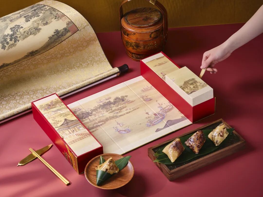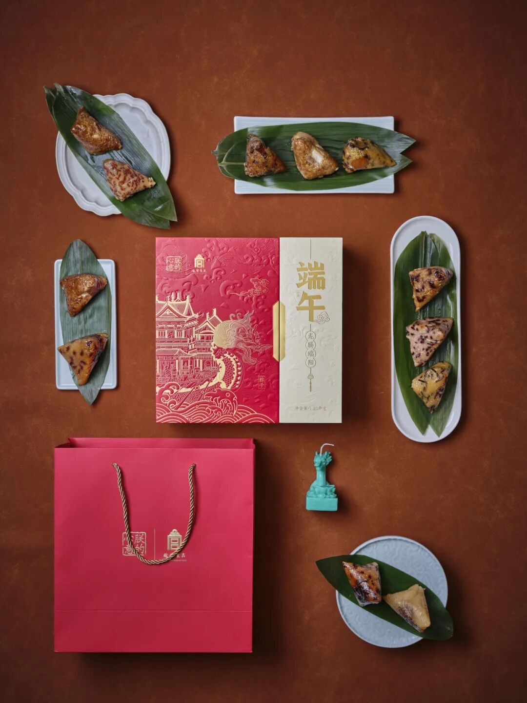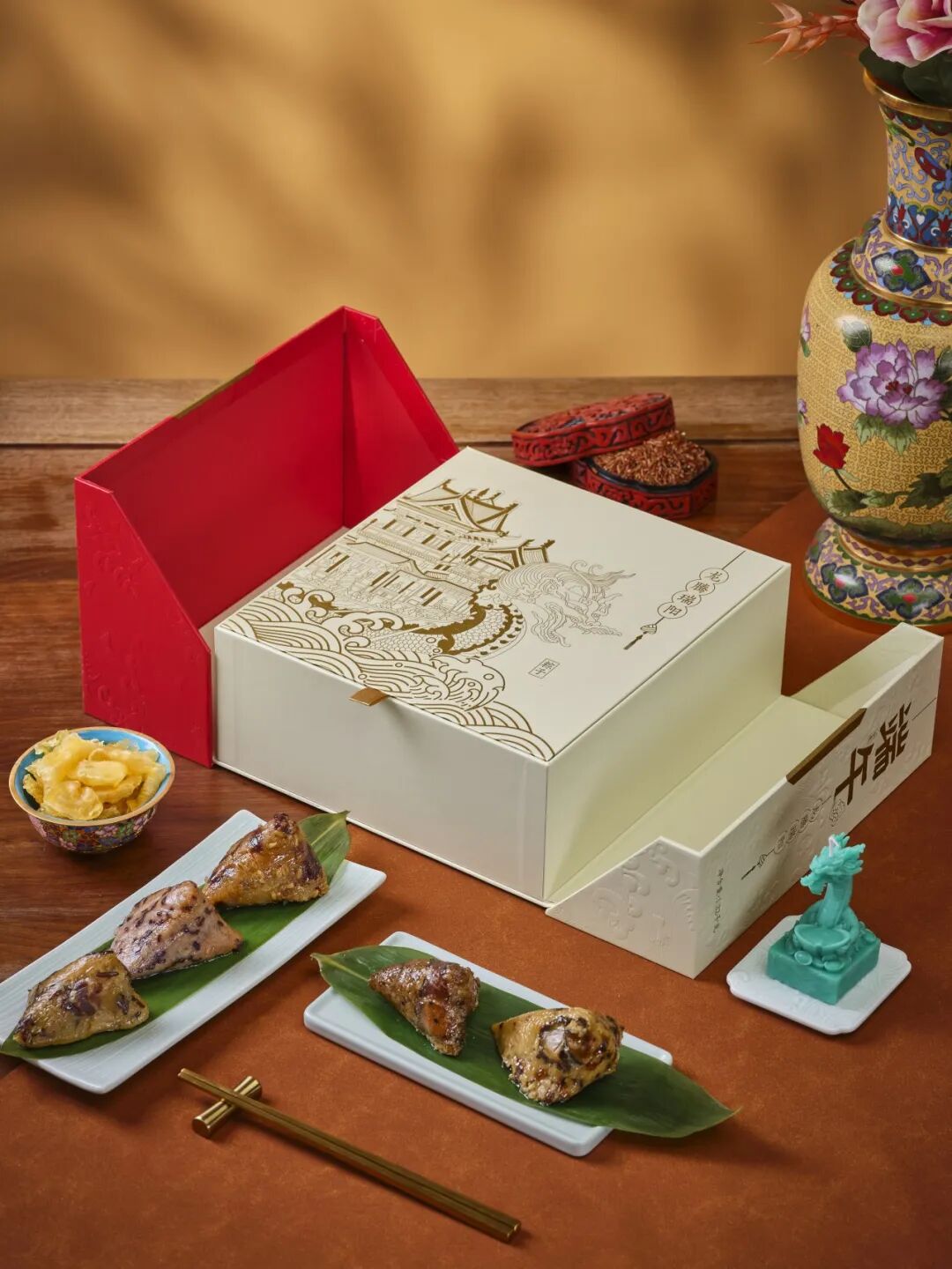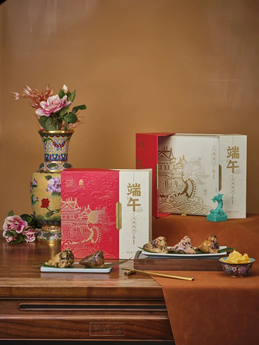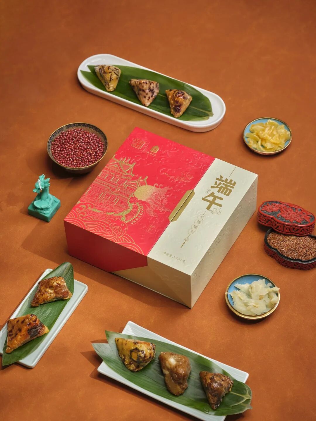 2024朕的心意·故宫食品的端午节粽子礼盒从传统文化与现代美学生活理念出发,推出了『龙腾瑞阳』『丝承万安』『扇引清风』和『裹粽入画』四款端午礼盒。