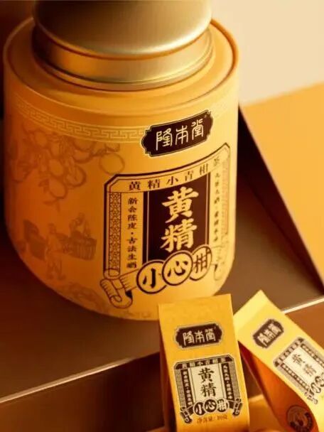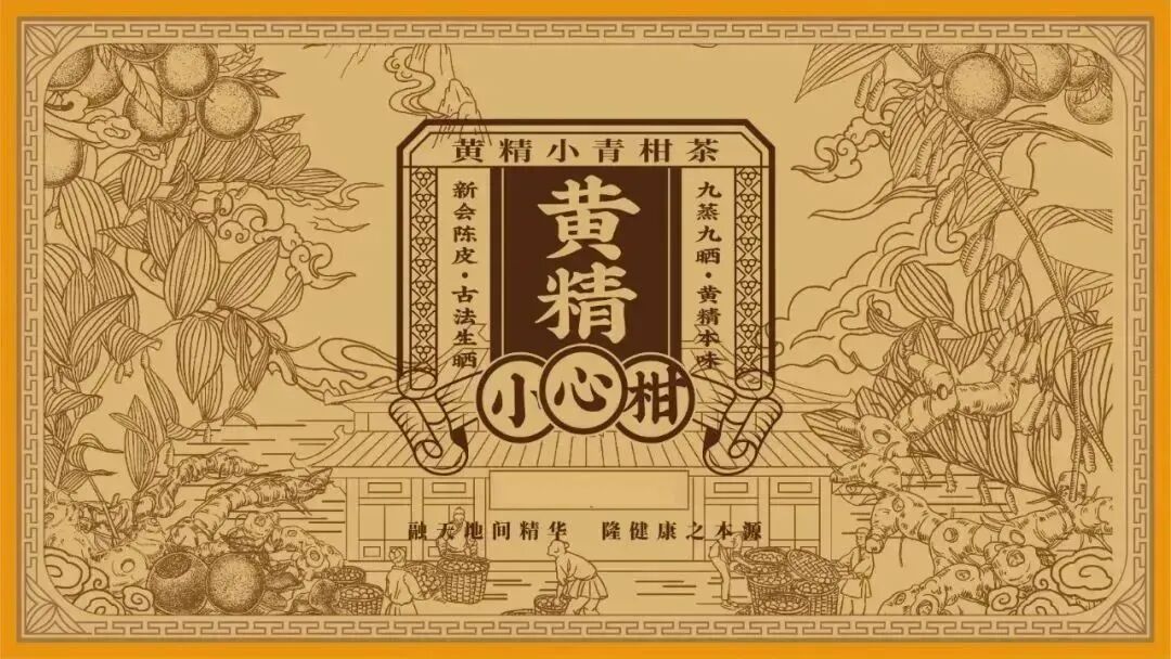 当黄精遇上陈皮,经过科学配比,便组成了这款黄精小心柑。陈皮棕,黄精黄,茶枝柑橙,包装的色彩构成以原料为灵感,展现该款茶品的自然本味。