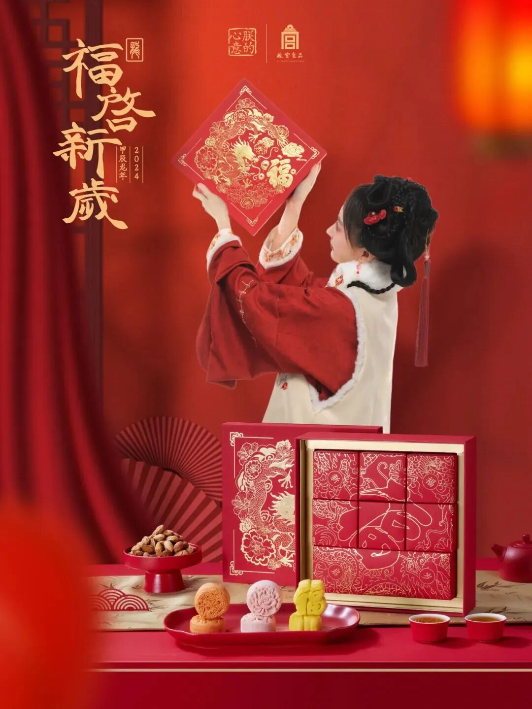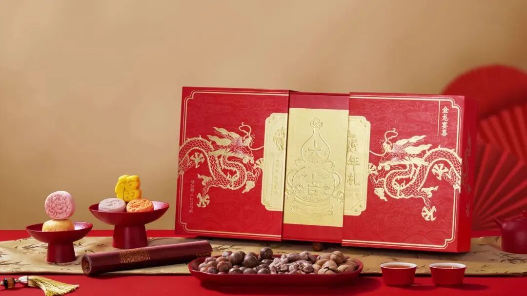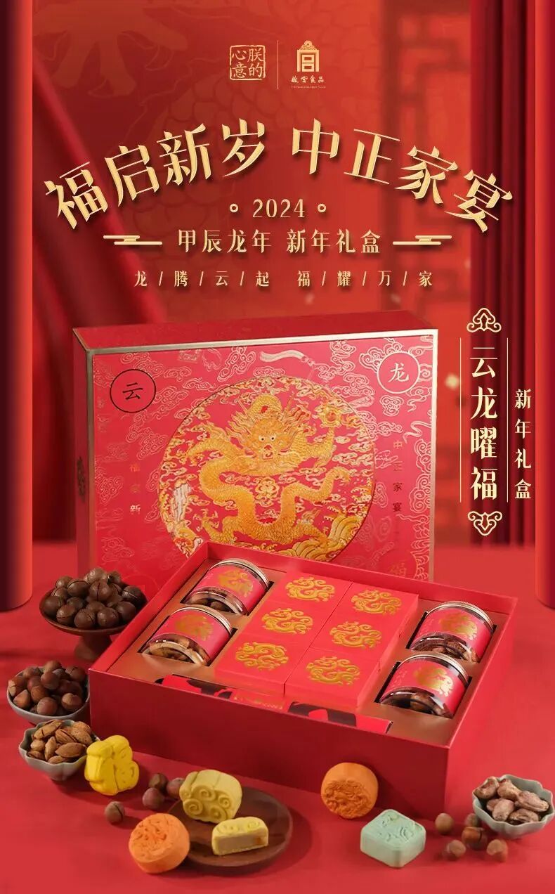 2024甲辰龙年,朕的心意·故宫食品将龙年传统饮食文化、礼文化与现代需求相结合,推出了「龙吟雅奏」、「金龙宴喜」、「云龙曜福」、「福启新岁」四款龙年限定新春礼盒,以现代食礼“赋活”传统,通过现代表达方式令馆藏美学和中国饮食文化,在当代生活中焕发新的生机。