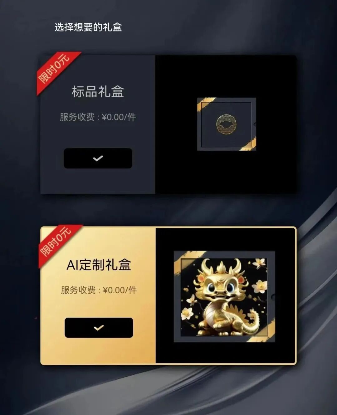 消费者可以根据不同的赠送场景选择不同的版式及文案,一键成型,更有氛围感。新岁启封,龙年将至。我们为用户设计了适合新年礼赠的经典祝福文案