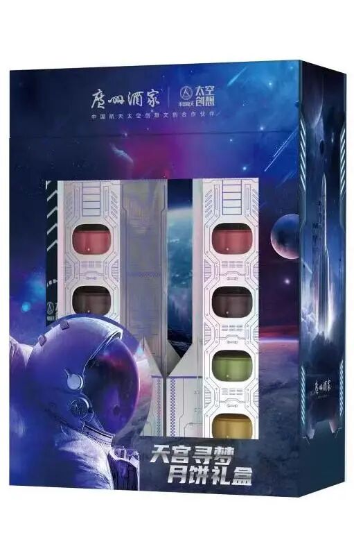 如果说星月探旅月饼礼盒表现了航天人和广州酒家品牌“欲上青天揽明月”的豪迈与坚守,那么这款天宫寻梦礼盒则是航天人和广州酒家“满眼生机转化钧,天工人巧日争新”创新精神的完美体现。
